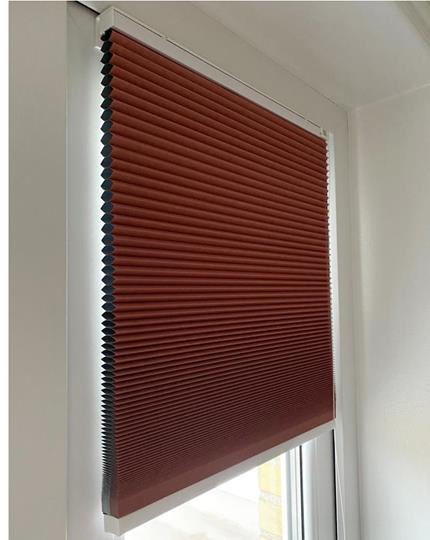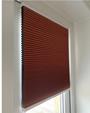 Murstensrød honeycomb-stof i polyester med et tyndt lag aluminium på indersiden, der gør stoffet 100% mørklæggende.