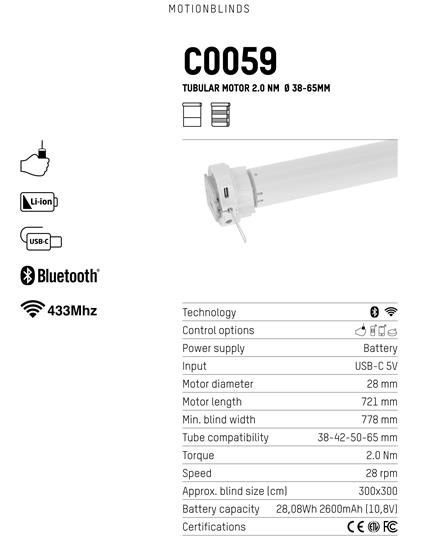 Batterimotor med Bluetooth XL til rullegardiner Art nr C0059 Kampanjerbjudanden! Monteringstilbehør til motor Tilbehørssæt og beslag Tilbehørssæt til batterimotor str. L +150 DKK Monteringssæt til rullegardin XL hvid +88 DKK Vælg Lave om Luk Fler val Visa extra val Dölj extra val Heraf moms Læg i varekurv I lager. Leveringstid 1-2 dage Bestillingsvare. Leveringstid3-4 uger Produkten är inte tillgänglig i detta utförande! Batterimotor med Bluetooth XL Produktinformation Dokument Batterimotor med Bluetooth XL Produktinformation Dokument Till toppen Produktinformation Motionblinds-motor til rullegardiner fra Coulisse. Betjening med fjernbetjening via radio, app via Bluetooth eller manuelt med pull cord. Indstil timere til automatisk. Køb en Wi-Fi-bridge eller hub for flere funktioner, såsom stemmestyring, og opret forbindelse til forskellige platforme. Virker med både Android og iPhone. Indbygget Li-ion batteri, der oplades med et USB-C kabel 1-2 gange om året. Vægt og mål:Længde inkl. tilbehør: 68 cmDiameter: 28 mmVægt: 1000 g Passer i vores 42 og 50 mm CTR rør (indvendig diameter 39,5 mm)Minimum mulig stofbredde 80 cmStørst mulig stofbredde 300 cm Køb komplette rullegardiner med batterimotor Bluetooth her! Till toppen Dokument motionblinds-manual_user_motion_cmd-03-cm-03-cm-05-cm-45-bluetooth-eng-5575.pdf