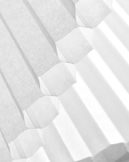 Honeycomb-stoffet virker som en isolator, som hjælper til at holde varmen ude om sommeren og inde om vinteren.