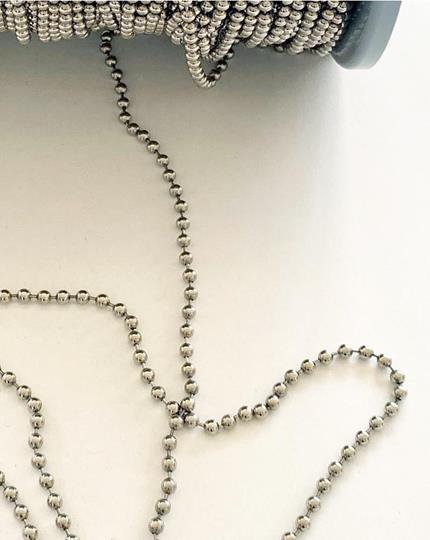 Kuglekæde Metal i metermål Art nr 0944 Metalkuglekæde i metermål. Kædelås medfølger ikke. læs mere Kampanjerbjudanden! Antal meter Metermål Välj 1 meter Udfyld det antal meter du skal bruge, de sendes i ét stykke. Fler val Visa extra val Dölj extra val Heraf moms Læg i varekurv I lager. Leveringstid 1-2 dage Bestillingsvare. Leveringstid3-4 uger Produkten är inte tillgänglig i detta utförande! Kuglekæde Metal i metermål Produktinformation Tilbehør Kuglekæde Metal i metermål Produktinformation Tilbehør Till toppen Produktinformation Kuglekæde Metal i metermål Bestil det antal meter du skal bruge. Kæden er skåret i enden og kædelås medfølger ikke. Ønsker du en endeløs kæde (i løkke), kan du bestille den her. Kuglerne er 4,5 mm i diameter og er placeret i 12 mm afstand, centrum til centrum af kuglerne. Passer til alle Rollodins kæde mekanismer, 25 mm, 28 mm og 36 mm. Husk at afstanden skal være 150 cm fra gulvet til underkanten af kæden for at være børnesikret. Køb vores kædelåse til at forbinde kæden. Till toppen Tilbehør Produktlista Vår sortering Navn (A-Ø) Navn (Ø-A) Pris (stigende) Pris (faldende) Rensa filter Kædelås metal 5-pak 25 DKK Læg i varekurv Sikkerhedsanordning for kæde 19 DKK Læg i varekurv