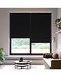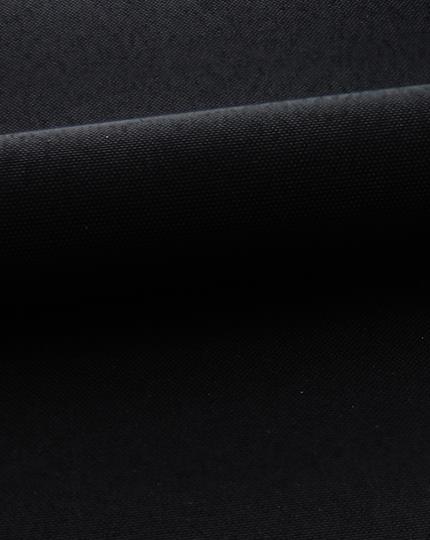 Dette er vores standard mørklægningsstof. Et sort, glat stof i polyester med en tynd belægning af akryl på bagsiden af ​​stoffet, som gør rullegardinet 100% lystæt. Sort på både for- og bagside.